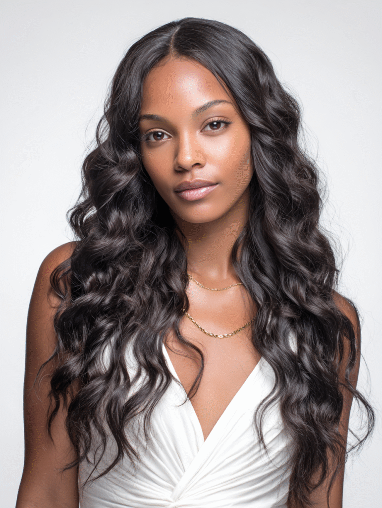 A loose wave quick weave with a middle part delivers a soft, balanced shape that flows smoothly on both sides. The stylist installs layered tracks, allowing the waves to fall naturally without feeling bulky. The middle part keeps the look clean while helping frame your features evenly.