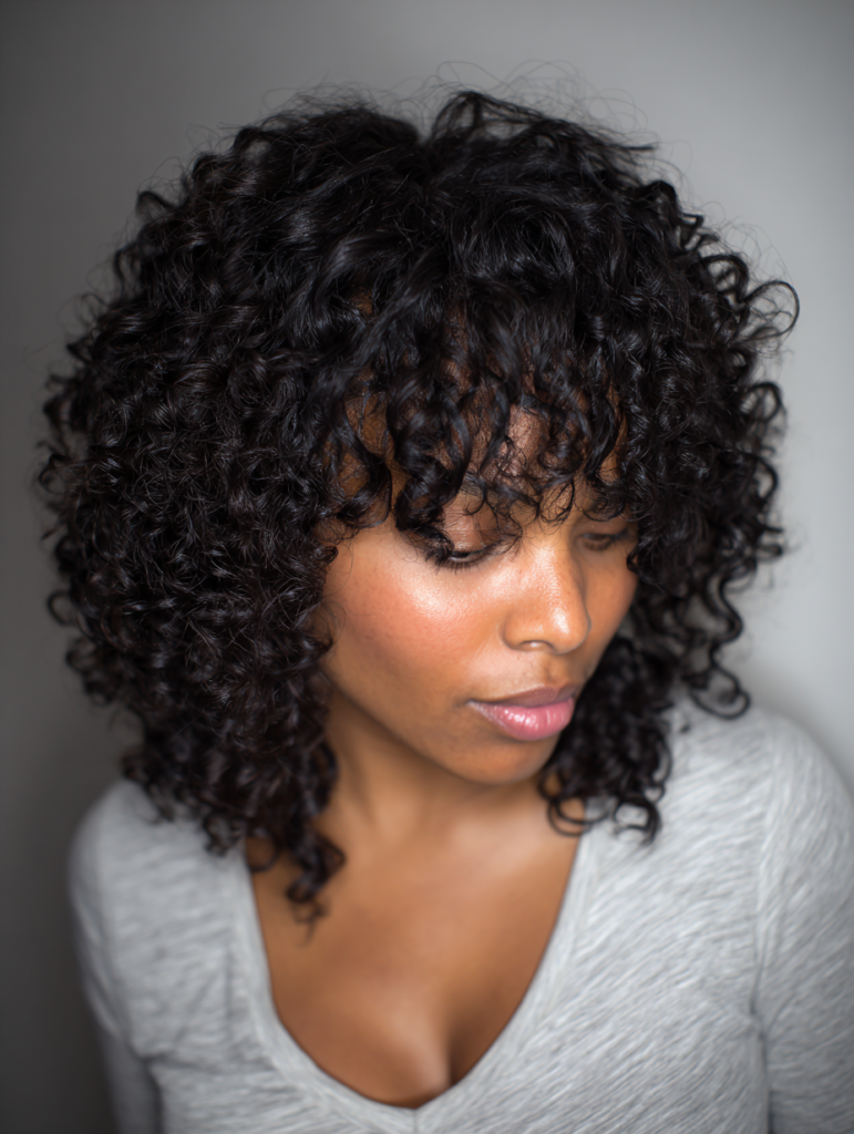 It works well for women who prefer big, soft volume with minimal heat. Moisturizing products help maintain definition, while diffusing speeds up drying. The style holds shape in humidity and works for both casual and dressy settings.