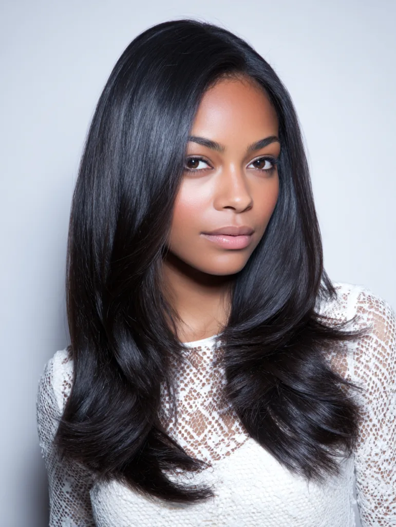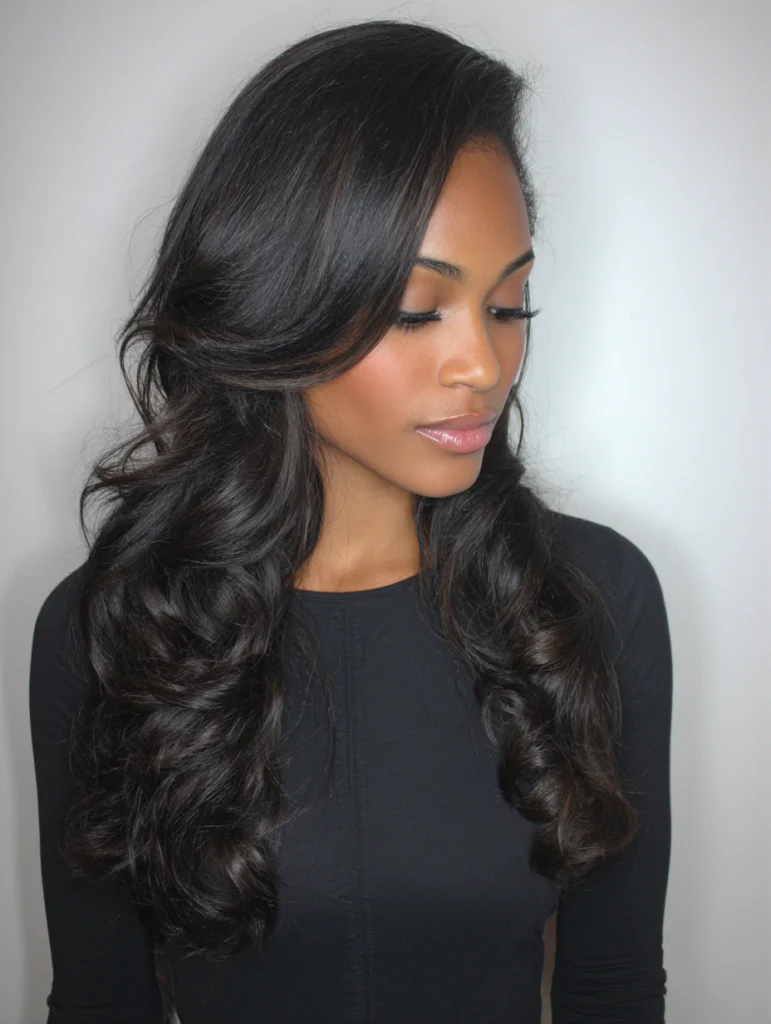 This style works for women who want a low-maintenance look that still feels polished. It requires less detangling and dries faster than long sew ins. A wrap or silk scarf at night helps keep it smooth and neat.