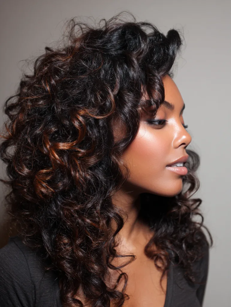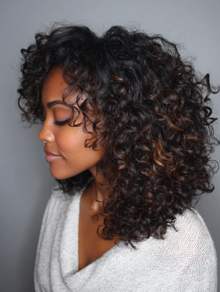 It works well for women who prefer big, soft volume with minimal heat. Moisturizing products help maintain definition, while diffusing speeds up drying. The style holds shape in humidity and works for both casual and dressy settings.