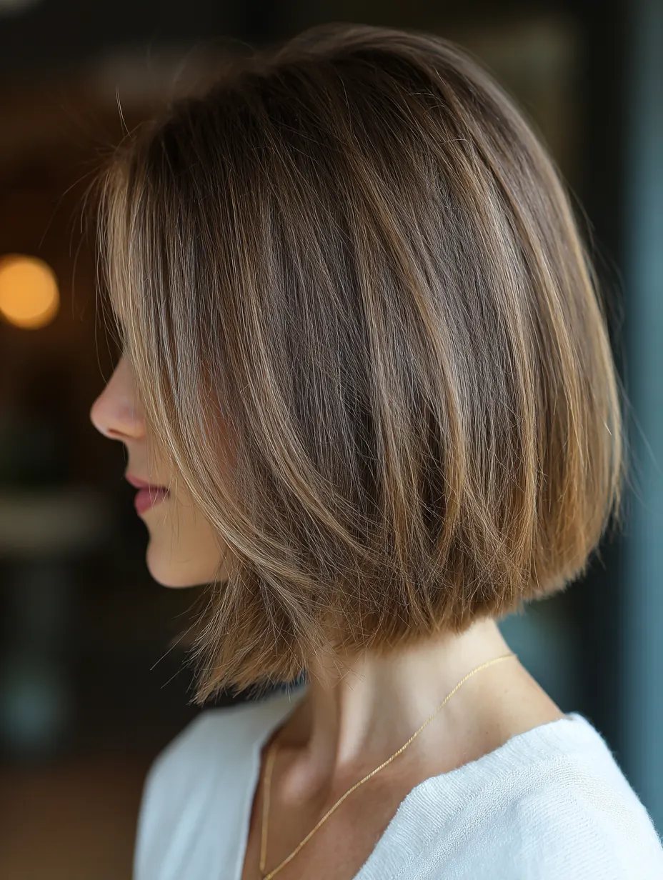 A soft layered bob keeps fullness at the perimeter while adding gentle movement inside. This balance helps fine hair avoid that see through look at the ends. It flatters square and round faces by softening angles and framing the jaw. Straight or slightly wavy textures benefit most from this shape.