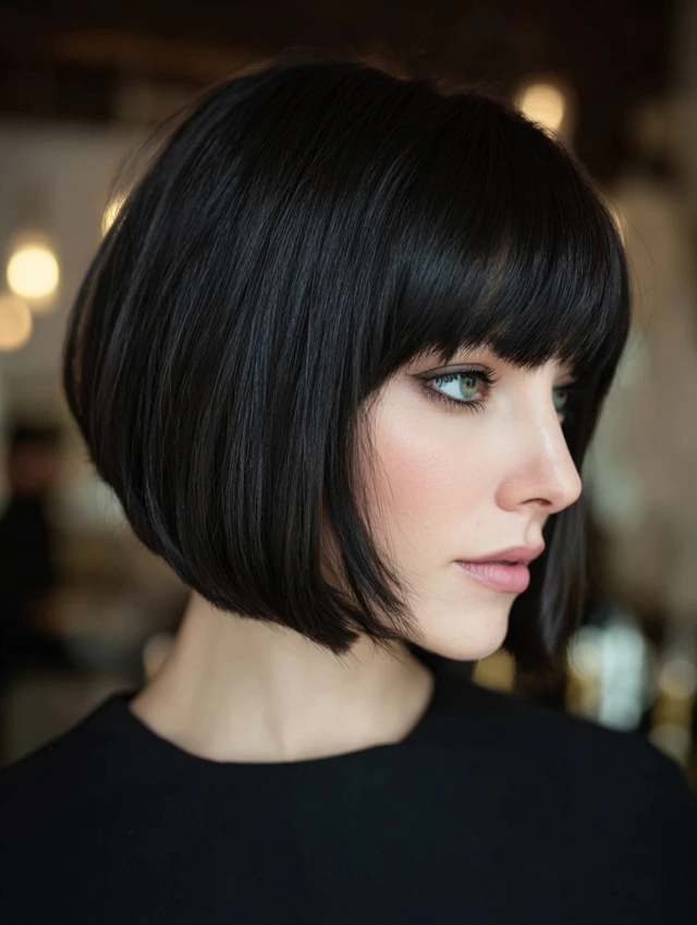 Blunt Bangs Short Layered Bob