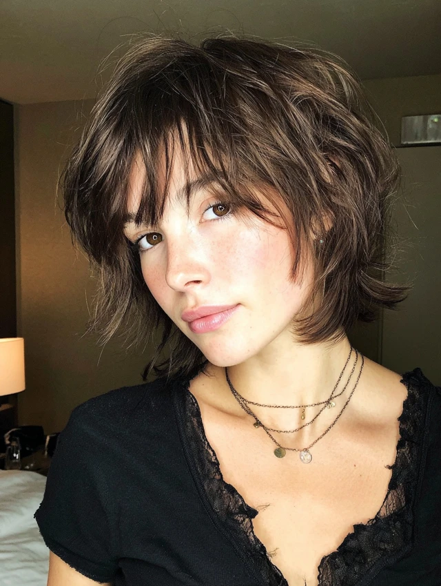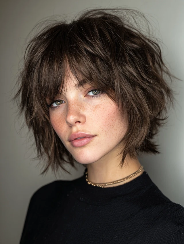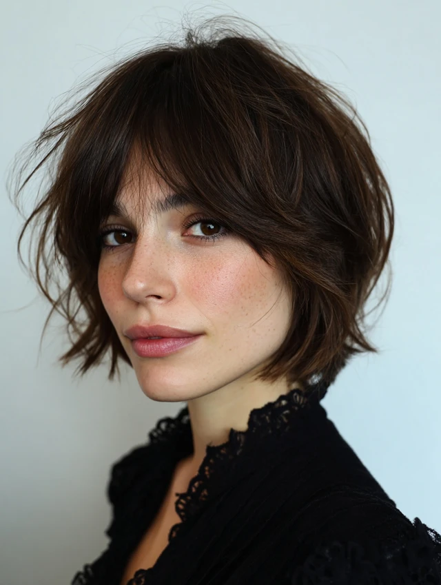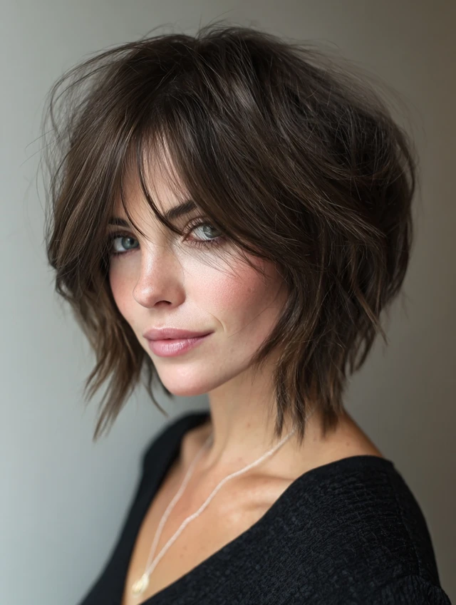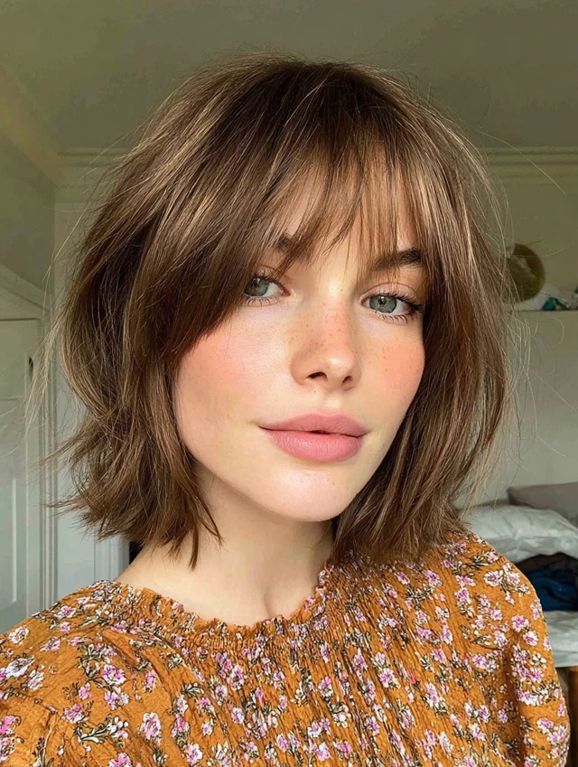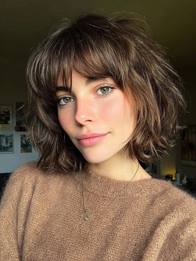 Textured Shaggy Layered Bob with Wispy Bangs