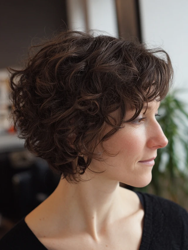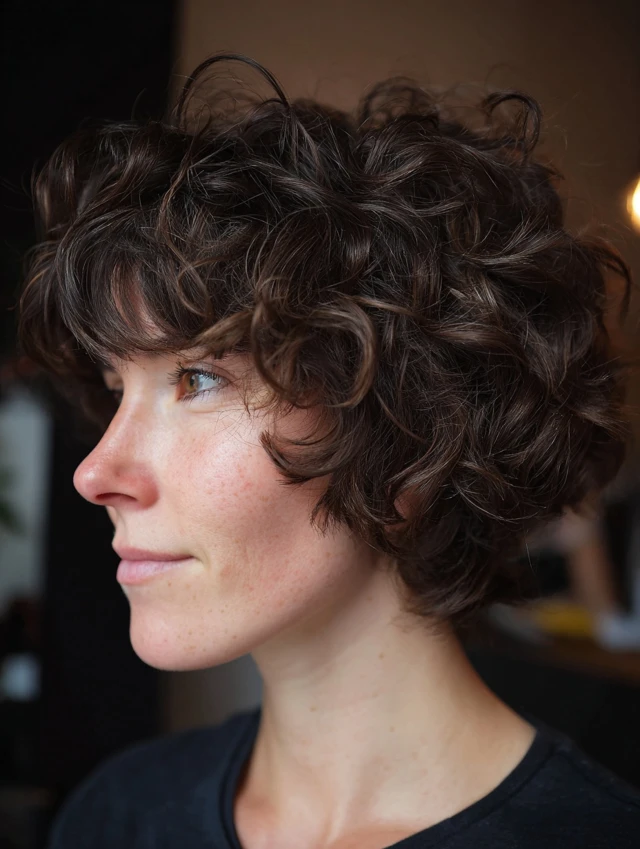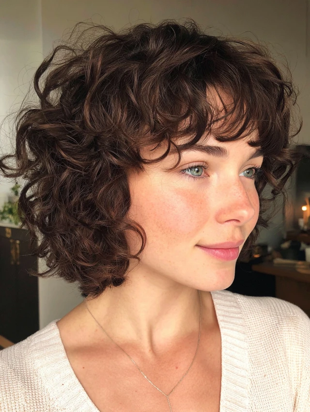 Curly Short Layered Bob with Bangs