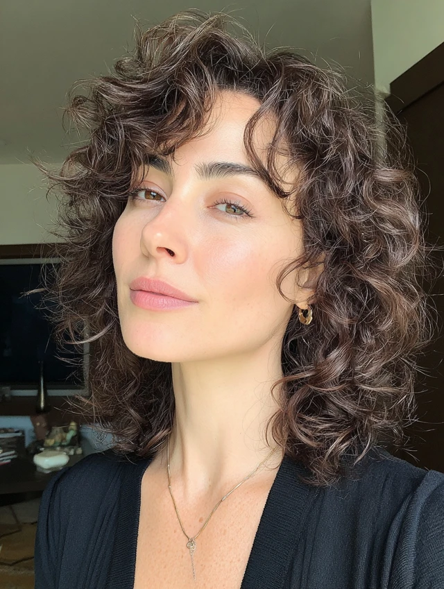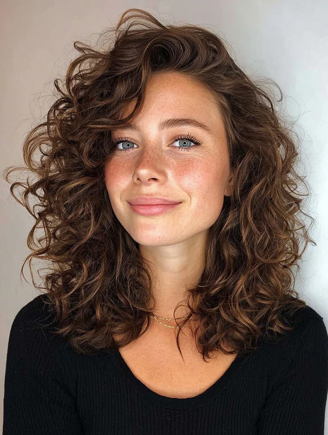 Curly hair benefits from strategic layering. This shape distributes volume evenly and avoids a triangular silhouette. It flatters square and oval faces by softening strong angles. Shoulder length keeps curls controlled and defined.