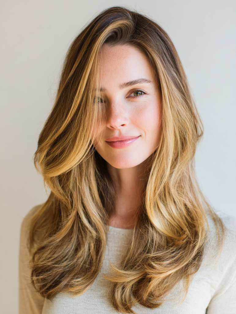 Use a round brush or heatless method to shape the layers toward the face. Keep the part slightly off-center for a relaxed finish. This look suits busy routines because layers fall naturally, reducing the need for constant adjustments. It works for workdays, weekends, and dressy plans.