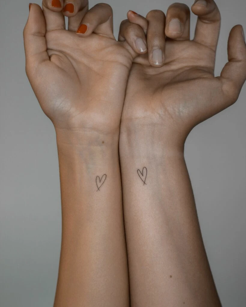 Matching Minimalist Heart Wrist Tattoos