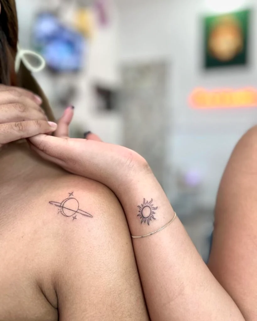 Planet and Sun Sister Tattoos