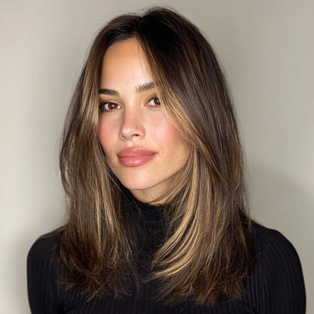 This style adds light underlayers to remove bulk from thick straight hair while keeping the top sleek. The layers hide underneath, so they do not change the outer shape. They simply help the hair fall more comfortably. You can wear it long or mid-length because the cut adapts well.