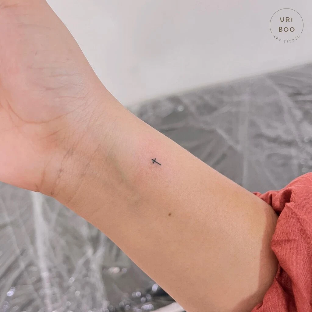 Minimalist Cross Tattoo on Inner Wrist