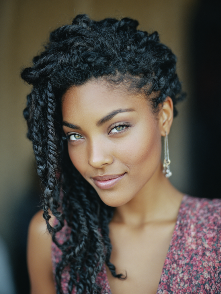 This look works well for people who want a subtle style change without adjusting length or texture. You can wear the twists loose, pinned back, or gathered into a side ponytail. The defined part adds structure and helps guide the style’s overall shape. Daily care stays easy because the twists hold their form naturally.