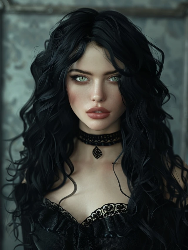 Long, straight black hair is classic vampire elegance. Works for oval and heart-shaped faces, elongating features and highlighting bone structure. Fine hair appears fuller due to its shine and smoothness.