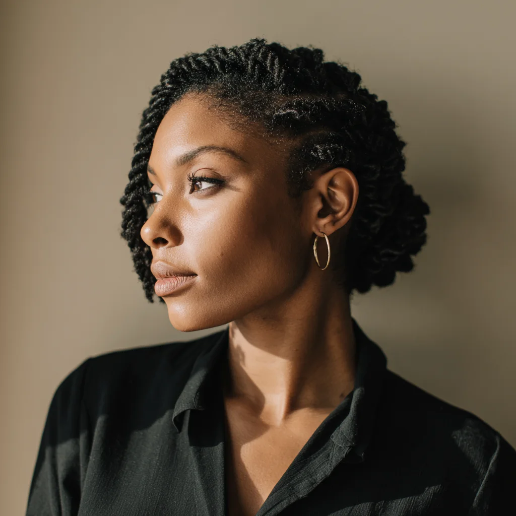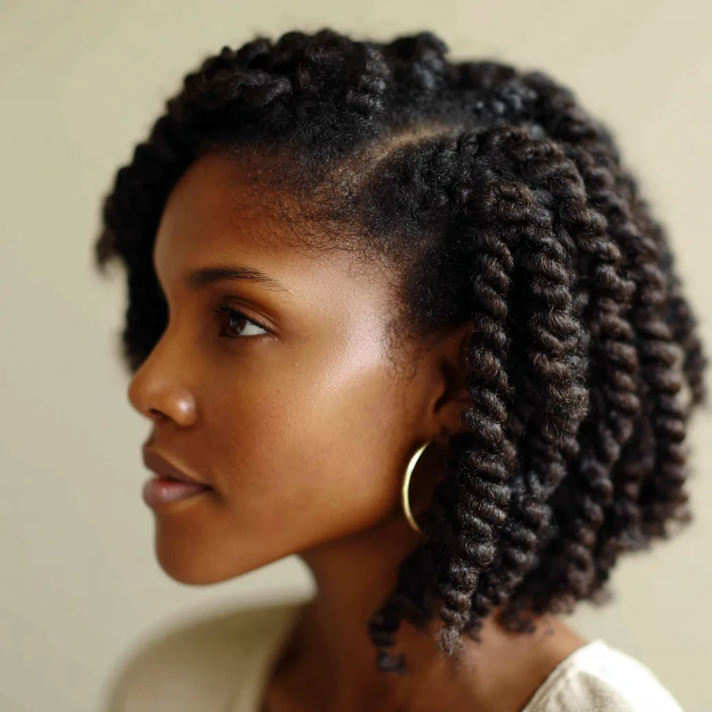 Flat twists guide hair upward or backward, creating structure with purpose. This style suits most face shapes because you can adjust direction and spacing. It works especially well for medium to thick natural hair that needs control without tension.