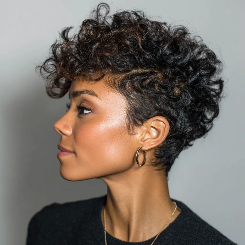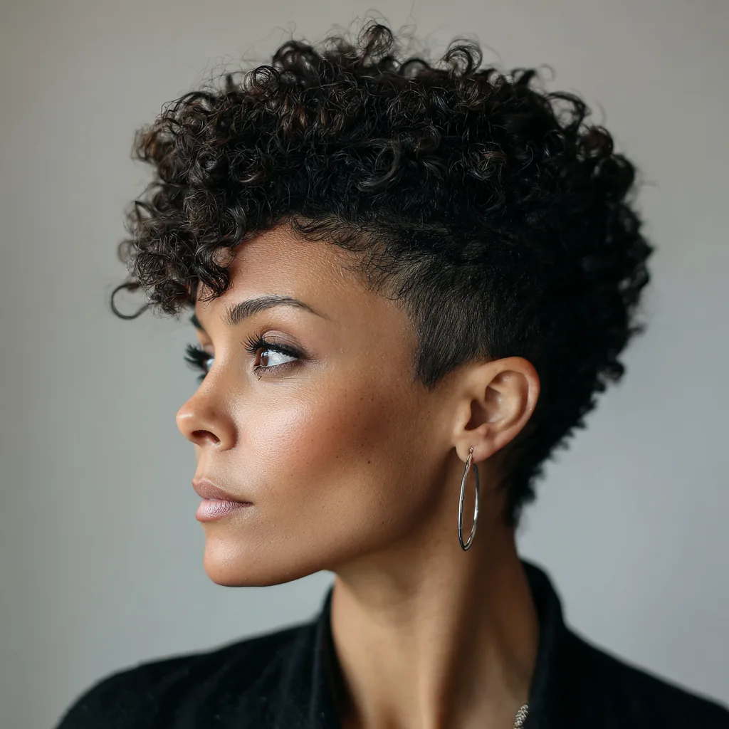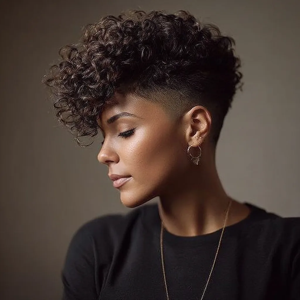 A tapered cut keeps the sides and back short while allowing texture on top. It highlights cheekbones and jawlines, especially on round or heart-shaped faces. This style works best for dense natural hair that responds well to shaping.